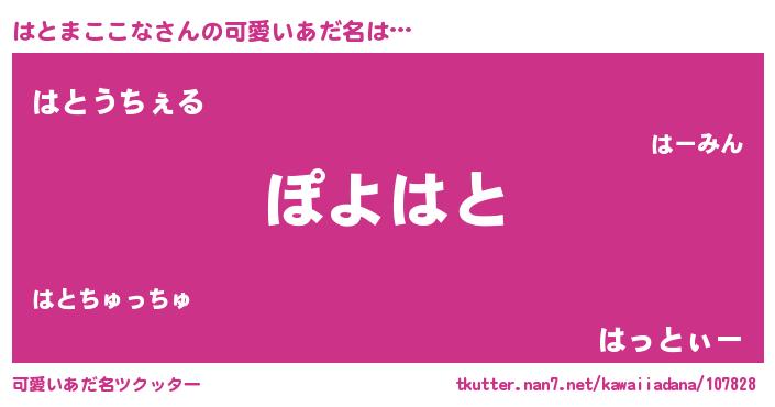 | 恥ずかしいあだ名 | 『ハトマココナデラックス』『はとっちょ』 |
