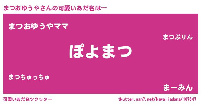 | 男性向けラノベタイトル風あだ名 | 『この素晴らしい世界にまつおゆうやを!』 |