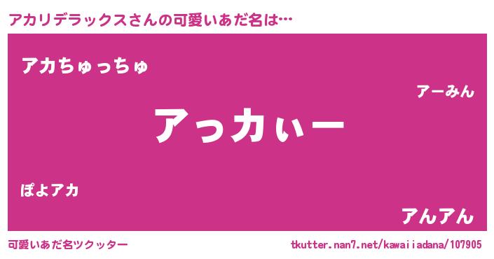 | 男性向けラノベタイトル風あだ名 | 『アカリデラックスに滅ぼされるだけの簡単なお仕事です』 |