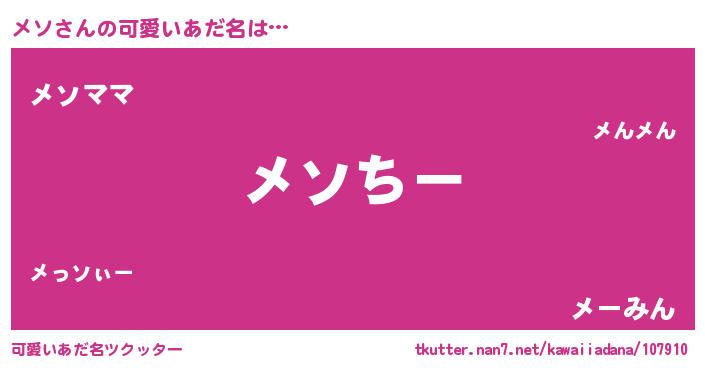 | ヒーロー風カッコイイあだ名 | 『ウルトラメソマン』『ネオメソ』 |
