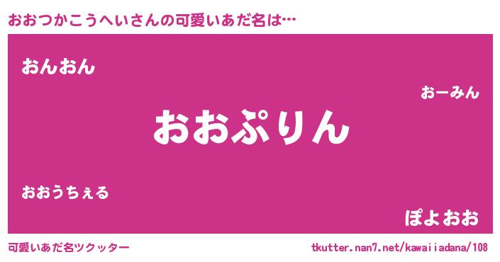 | 女子向けラノベタイトル風あだ名 | 『おおつかこうへいの玉の輿計画!』 |