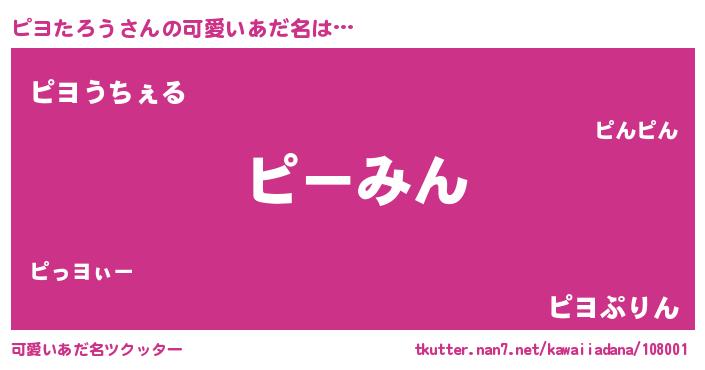 | 意味不明あだ名 | 『自称ピヨたろう』『ペロリンピヨたろう』 |