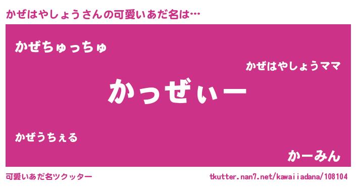 | 男性向けラノベタイトル風あだ名 | 『かぜはやしょうの嫁は女の子じゃないと思った?』 |