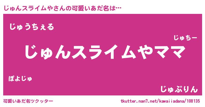 | 男性向けラノベタイトル風あだ名 | 『じゅんスライムやという概念が存在しない退屈な世界 』 |