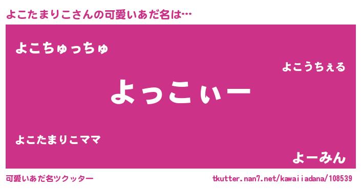 | ポケモン風あだ名 | 『ヒヨコタマリコ』『ヨックウザ』 |
