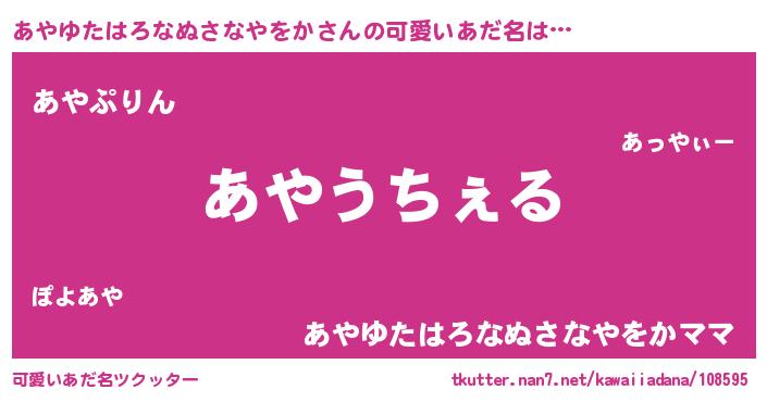 | 男性向けラノベタイトル風あだ名 | 『Re:あやゆたはろなぬさなやをかから始める異世界生活』 |