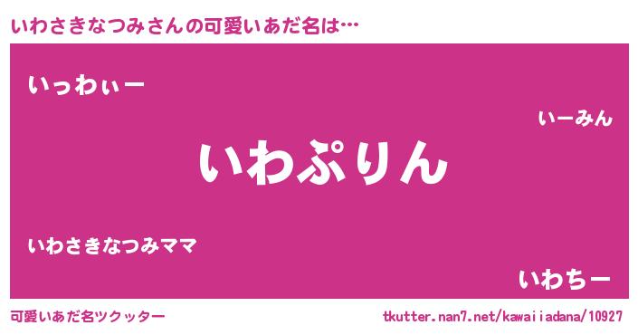 | 男性向けラノベタイトル風あだ名 | 『いわさきなつみ~年齢イコール彼女いない歴の魔法使い~』 |