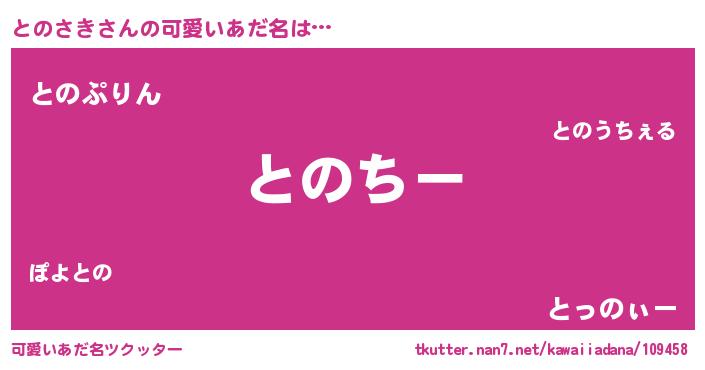 | 意味不明あだ名 | 『とのさきフォーエバー』『自称とのさき』 |