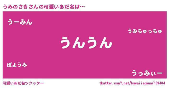 | ヘコむあだ名 | 『うみにー』『うみを』『豆乳』 |