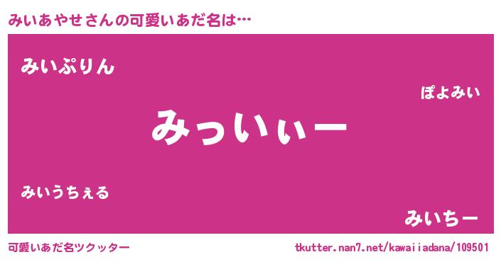 | 男性向けラノベタイトル風あだ名 | 『みいあやせの嫁は女の子じゃないと思った?』 |