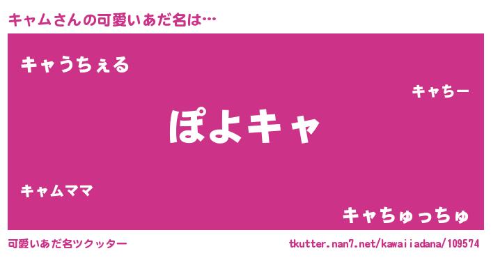 | 意味不明あだ名 | 『住所不定無職キャム(85歳)』『自称キャム』 |