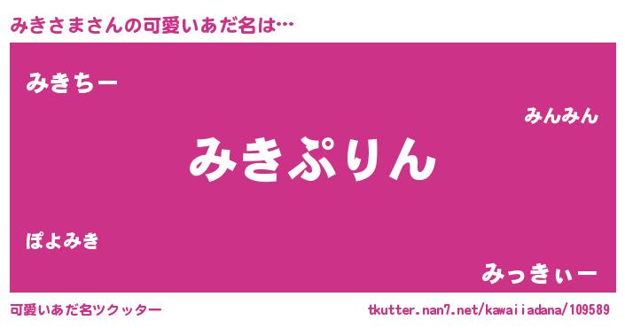 | 男性向けラノベタイトル風あだ名 | 『みきさま~年齢イコール彼女いない歴の魔法使い~』 |
