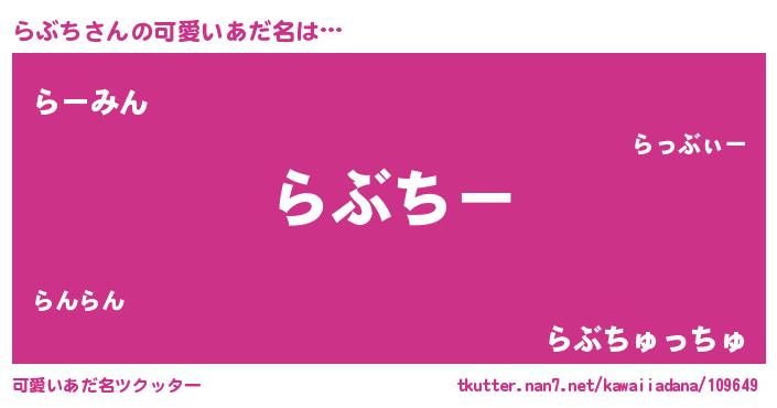 | 意味不明あだ名 | 『らぶちフォーエバー』『ペロリンらぶち』 |