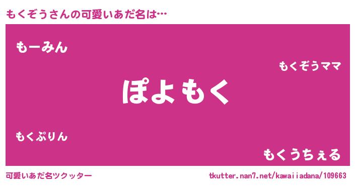 | ヘコむあだ名 | 『もくぞう(爆)』『もくお』『牛乳』 |