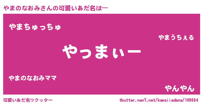 | 男性向けラノベタイトル風あだ名 | 『やまのなおみの嫁は女の子じゃないと思った?』 |