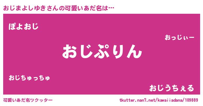 | 男性向けラノベタイトル風あだ名 | 『おじまよしゆき~年齢イコール彼女いない歴の魔法使い~』 |