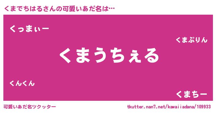 | 女子向けラノベタイトル風あだ名 | 『くまでちはるなんてお断りですっ。』 |