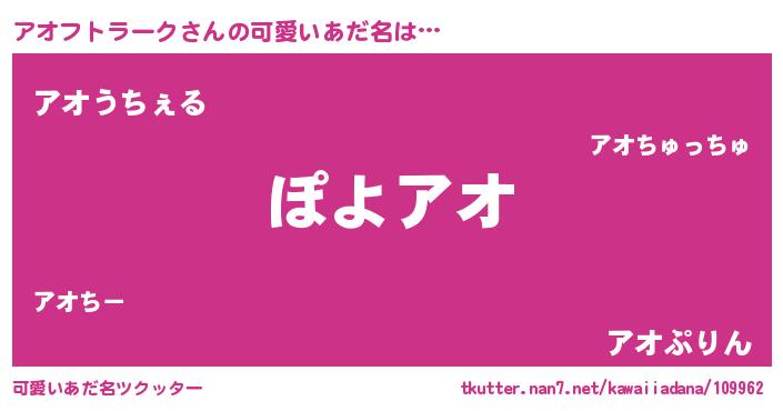 | ヒーロー風カッコイイあだ名 | 『仮面アオダー』『ネオアオフトラーク』 |