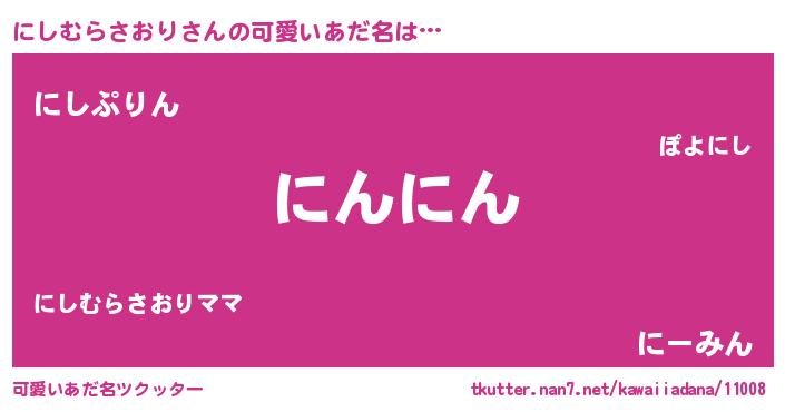 | ヘコむあだ名 | 『にしにー』『にしむらさおり(笑)』 |