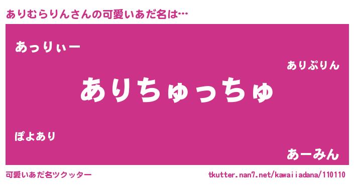 | ヘコむあだ名 | 『ありを』『ありむらりん(遠い目)』 |