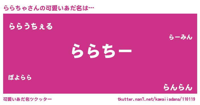 | 意味不明あだ名 | 『ららちゃフォーエバー』『自称ららちゃ』 |