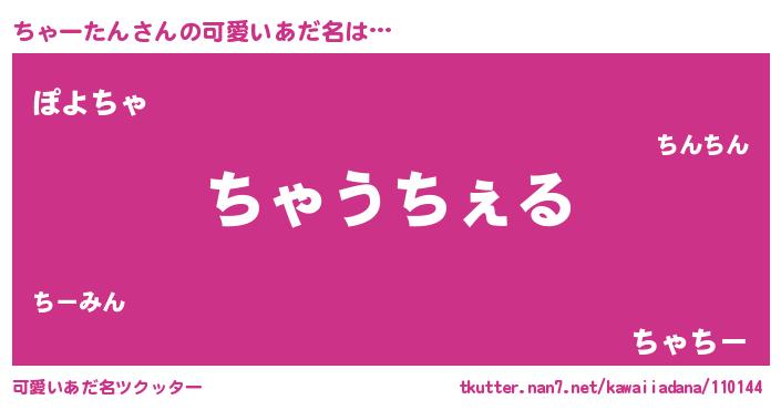 | 男性向けラノベタイトル風あだ名 | 『Re:ちゃーたんから始める異世界生活』 |