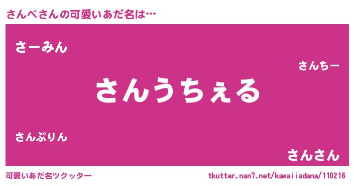 | 意味不明あだ名 | 『自称さんべ』『ペロリンさんべ』 |