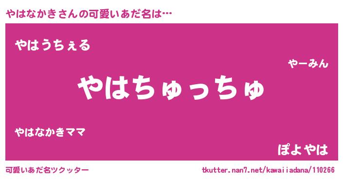 | ヘコむあだ名 | 『やはなかき(苦笑)』『やはふぇ~』 |