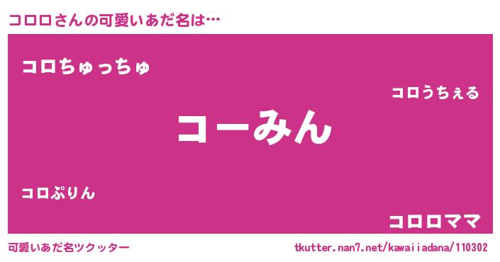| 意味不明あだ名 | 『眠気覚ましガムコロロ味』『自称コロロ』 |