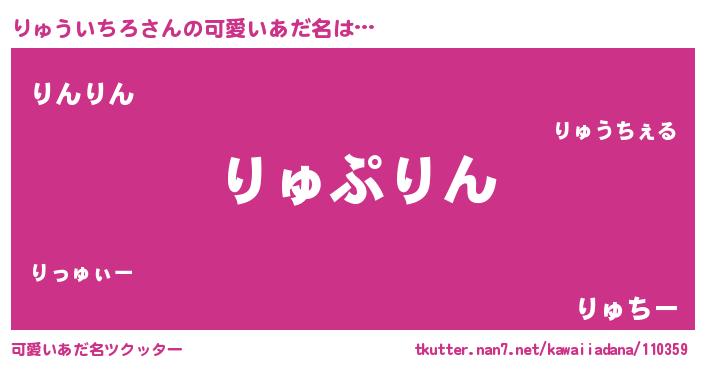 | 男性向けラノベタイトル風あだ名 | 『りゅういちろ~年齢イコール彼女いない歴の魔法使い~』 |