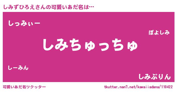 | ヒーロー風カッコイイあだ名 | 『愛の使者しみずひろえ』『魔戒騎士シミ』 |