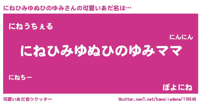 | ヘコむあだ名 | 『にねひみゆぬひのゆみ(笑)』『酢こんぶ』 |