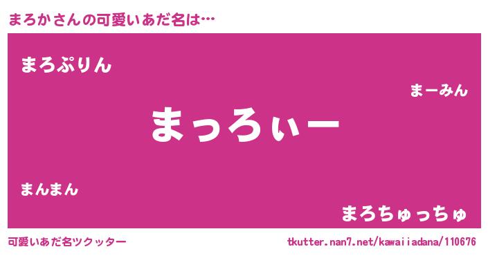 | 男性向けラノベタイトル風あだ名 | 『ダンジョンにまろかを求めるのは間違っているだろうか』 |