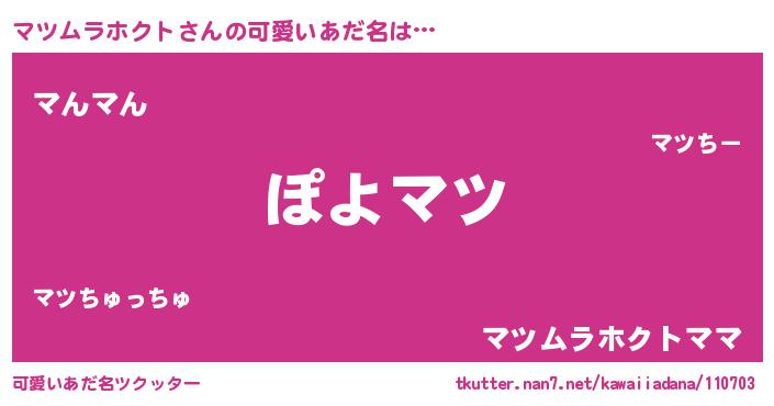 | 意味不明あだ名 | 『住所不定無職マツムラホクト(8歳)』 |