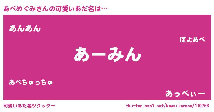 | 恥ずかしいあだ名 | 『プリティーあべめぐみ』『アベリンリン』 |