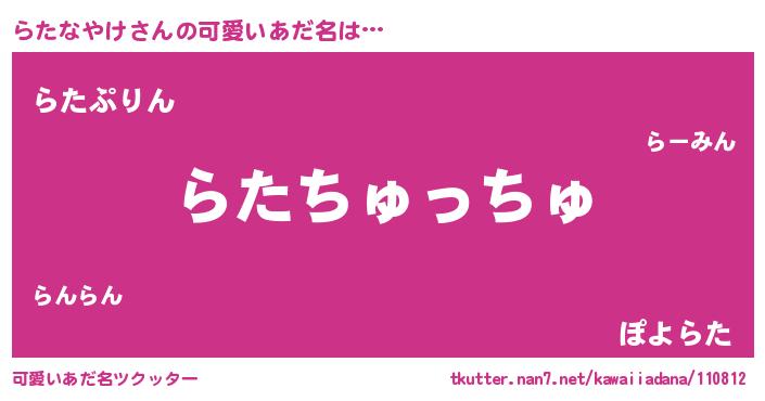 | ヘコむあだ名 | 『らたもー』『らたなやけ(爆)』 |