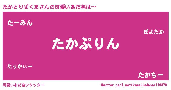 | 男性向けラノベタイトル風あだ名 | 『はたらくたかとりばくまさま!』 |