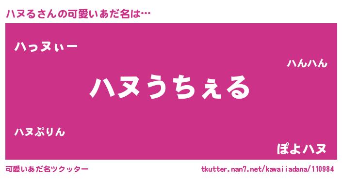 | ヒーロー風カッコイイあだ名 | 『究極戦士ハヌル』『銀牙騎士ハヌ』 |