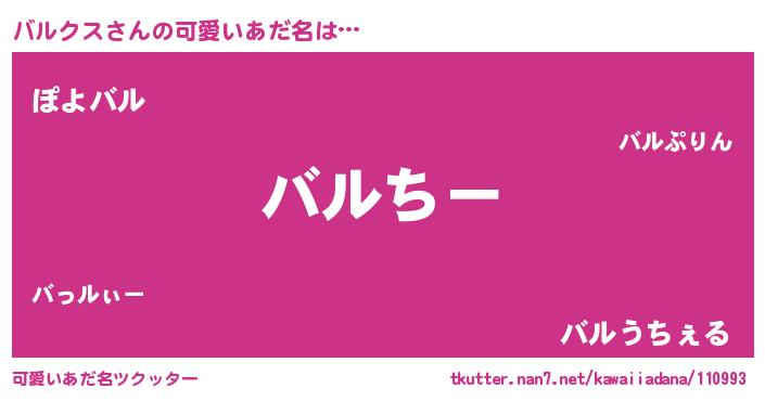 | 女子向けラノベタイトル風あだ名 | 『バルクスの雑貨屋さん』『闇のバルクス』 |