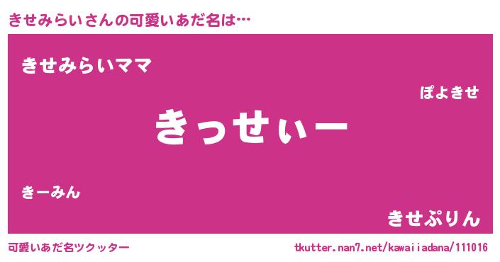 | ヘコむあだ名 | 『きせっ子』『きせみらい(小並感)』 |