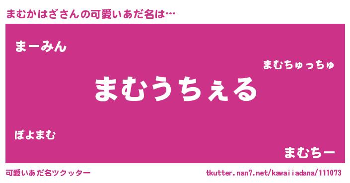 | 男性向けラノベタイトル風あだ名 | 『Re:まむかはざから始める異世界生活』 |