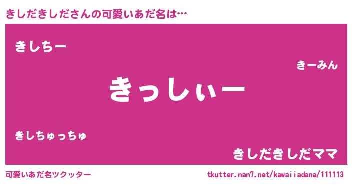 | 男性向けラノベタイトル風あだ名 | 『きしだきしだの嫁は女の子じゃないと思った?』 |