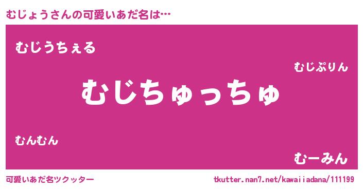 | ヘコむあだ名 | 『むじにゅー』『むじっ子』 |