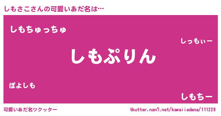 | ヒーロー風カッコイイあだ名 | 『正義の使者しもさこ』『暗黒騎士シモ』 |