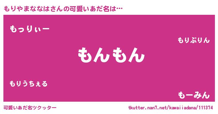 | 恥ずかしいあだ名 | 『プリティーもりやまななは』『もりちん』 |