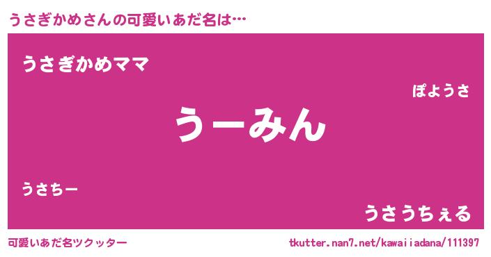 | ヘコむあだ名 | 『うさぎかめ(笑)』『なまこ酢』 |