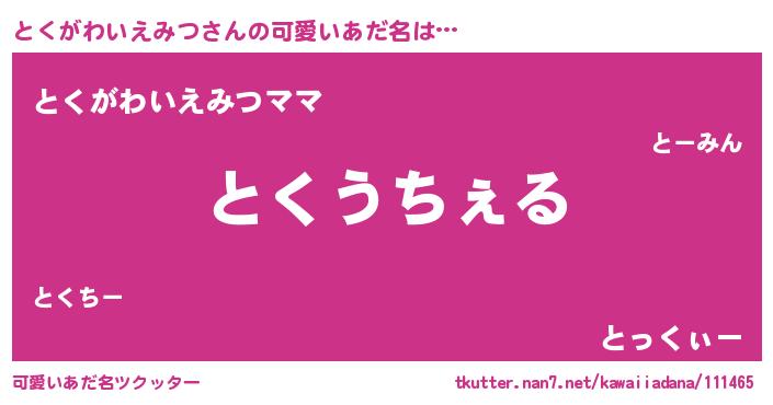 | ヘコむあだ名 | 『とくがわいえみつ(笑)』『とくぷりん』 |