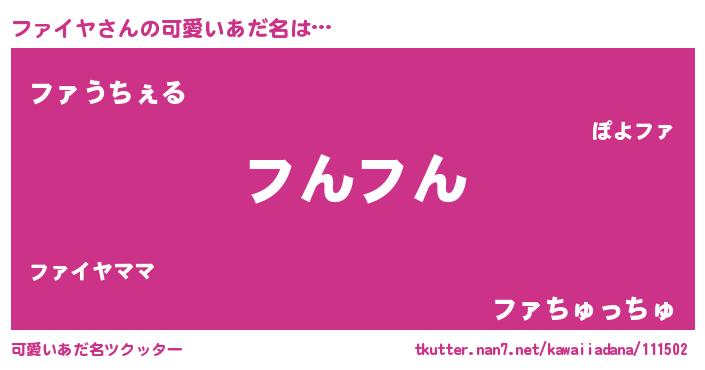 | ヒーロー風カッコイイあだ名 | 『スーパーファイヤ』『究極戦士ファイヤ』 |