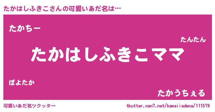 | 女子向けラノベタイトル風あだ名 | 『たかはしふきこの契約王妃』 |