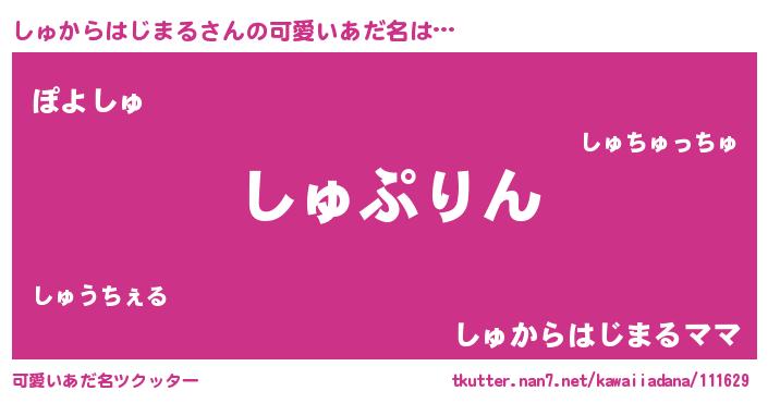 | ヘコむあだ名 | 『しゅからはじまる(苦笑)』『しゅぷりん』 |